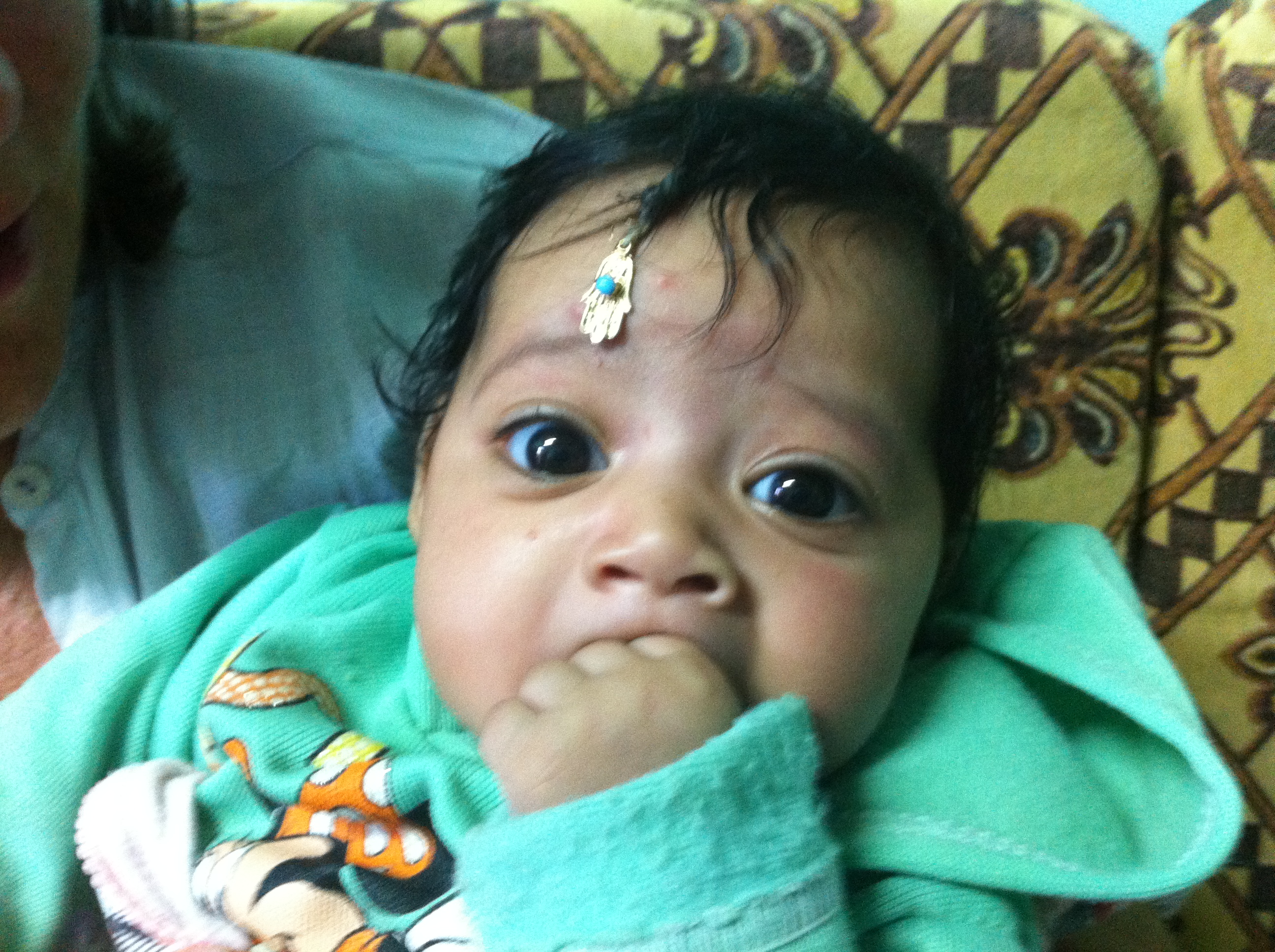 Egyptian women who live in baladi (“traditional”) urban quarters often make khamaysa which are amulets made up of five (khamsa) objects to attach to their children’s hair or black aprons. The five objects can be made of peppers, hands, circles, or stars hanging from hooks.