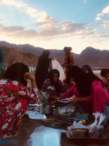 Sometimes people like to show their generosity by inviting a few guests and organising/cooking all the food and providing the drinks. Here a local Egyptian lady invited 15 Bedouin women to the beach for iftar – it was a beautiful sunset and a lovely place to eat.
